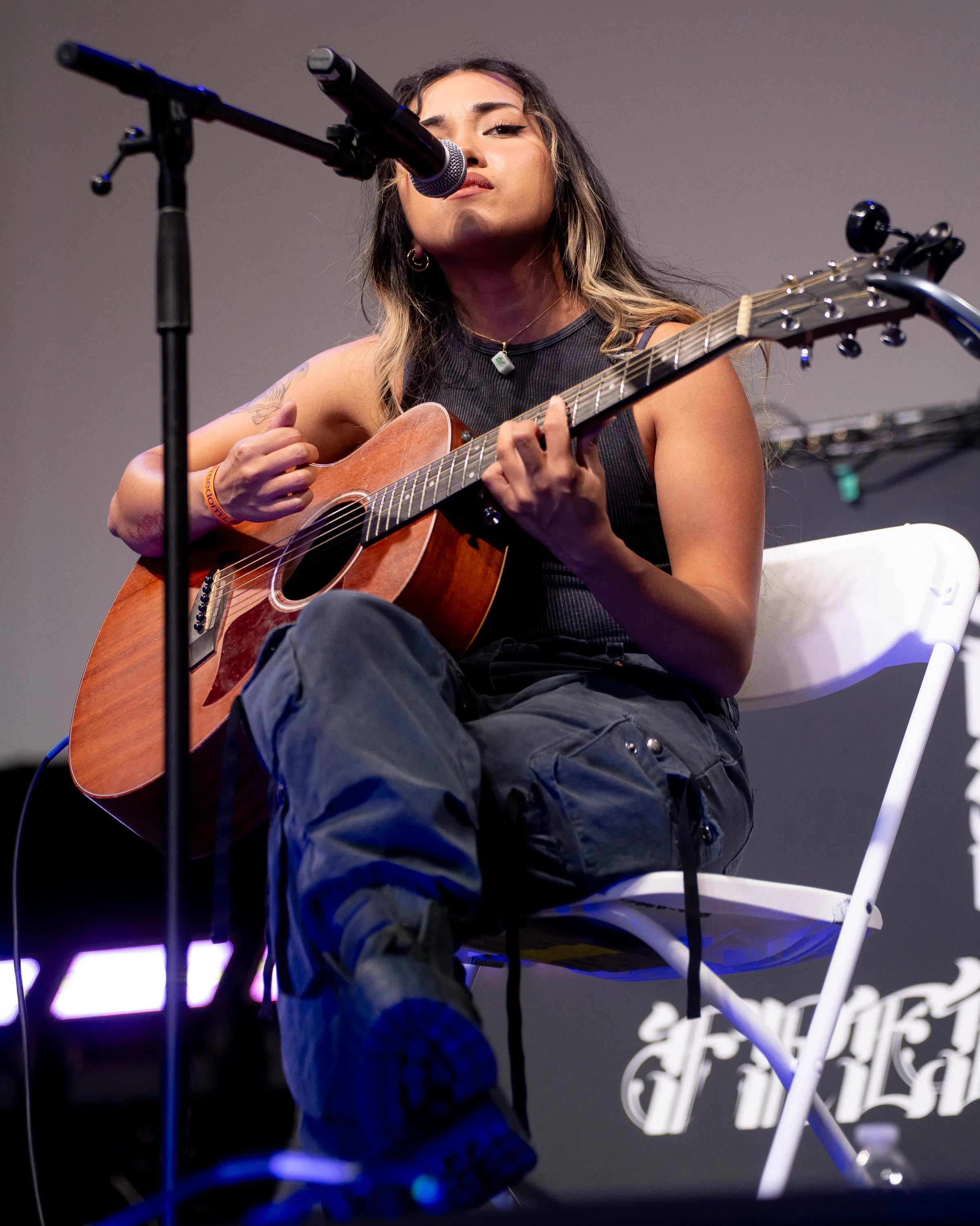 Preceding Marquette was Kat Padlan, a Los Angeles-based singer-songwriter who blends jazz, Neo-soul, R&B, and funk. Kat performed an “unplugged” set, taking the stage seated with an acoustic guitar.