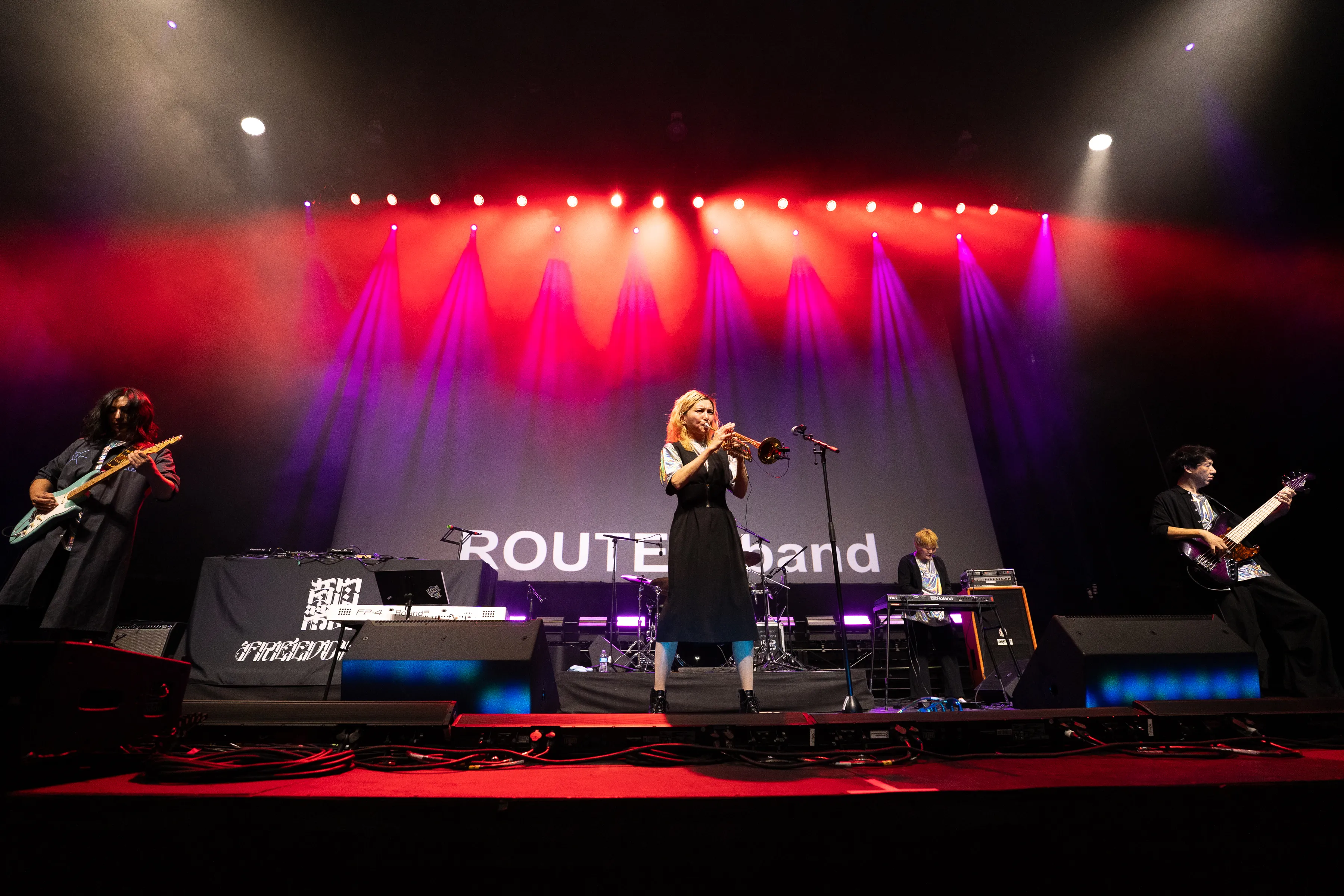 ROUTE14band are: Chihiro Yamazaki on trumpet, Satoshi Yamashita on drums, Koji Yamamoto on bass, Hana Takami on keys, and Masahiro Misawa on guitar. Aside from Masahiro, the other band members are all part of the original lineup from its inception in 2010.