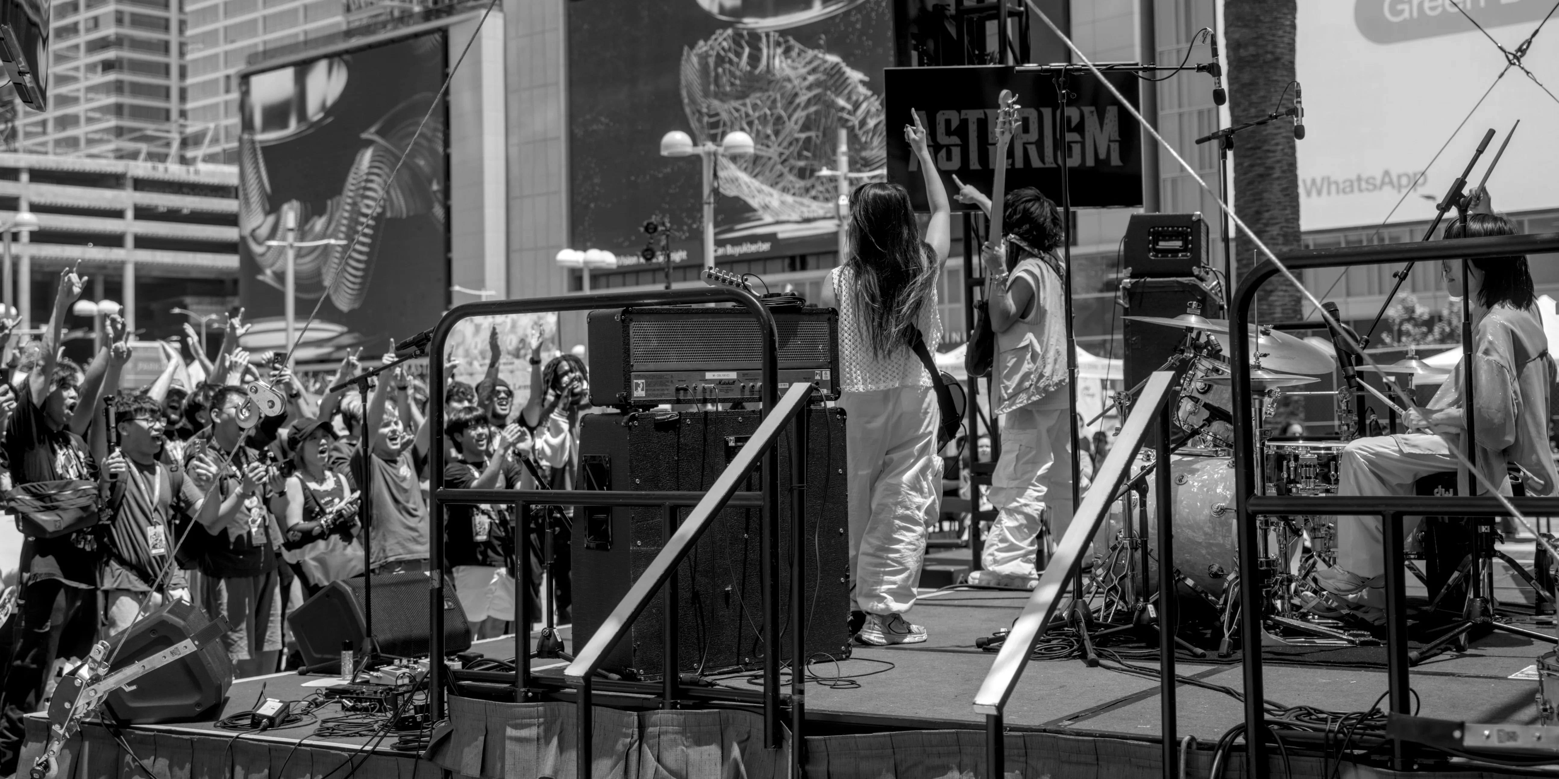 ASTERISM, the formidable instrumental heavy metal trio from Japan, delivered an electrifying series of performances at Anime Expo 2024. Their jam-packed schedule included daily live sets that captivated diverse crowds, from dedicated metal fans to casual convention-goers, showcasing their technical prowess and dynamic stage presence. This is a showcase of ASTERISM’s performance on July 7, the closing day of the convention.