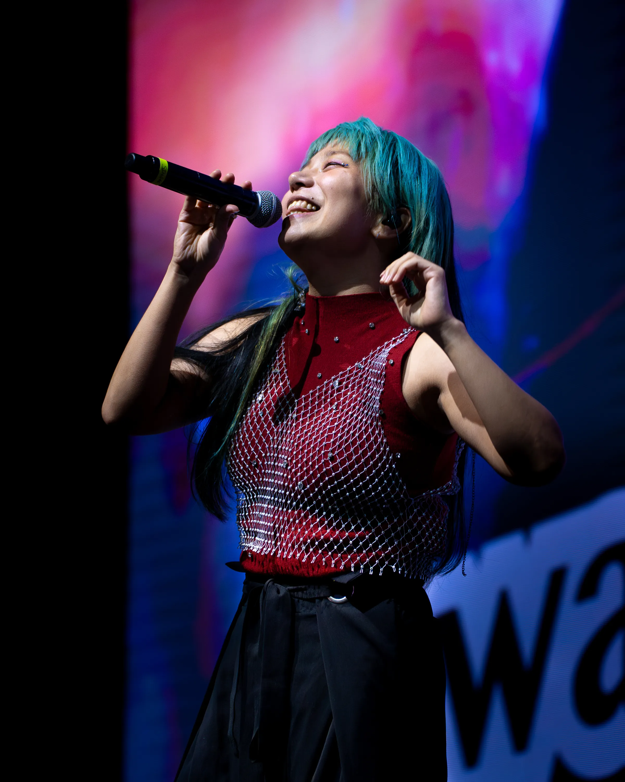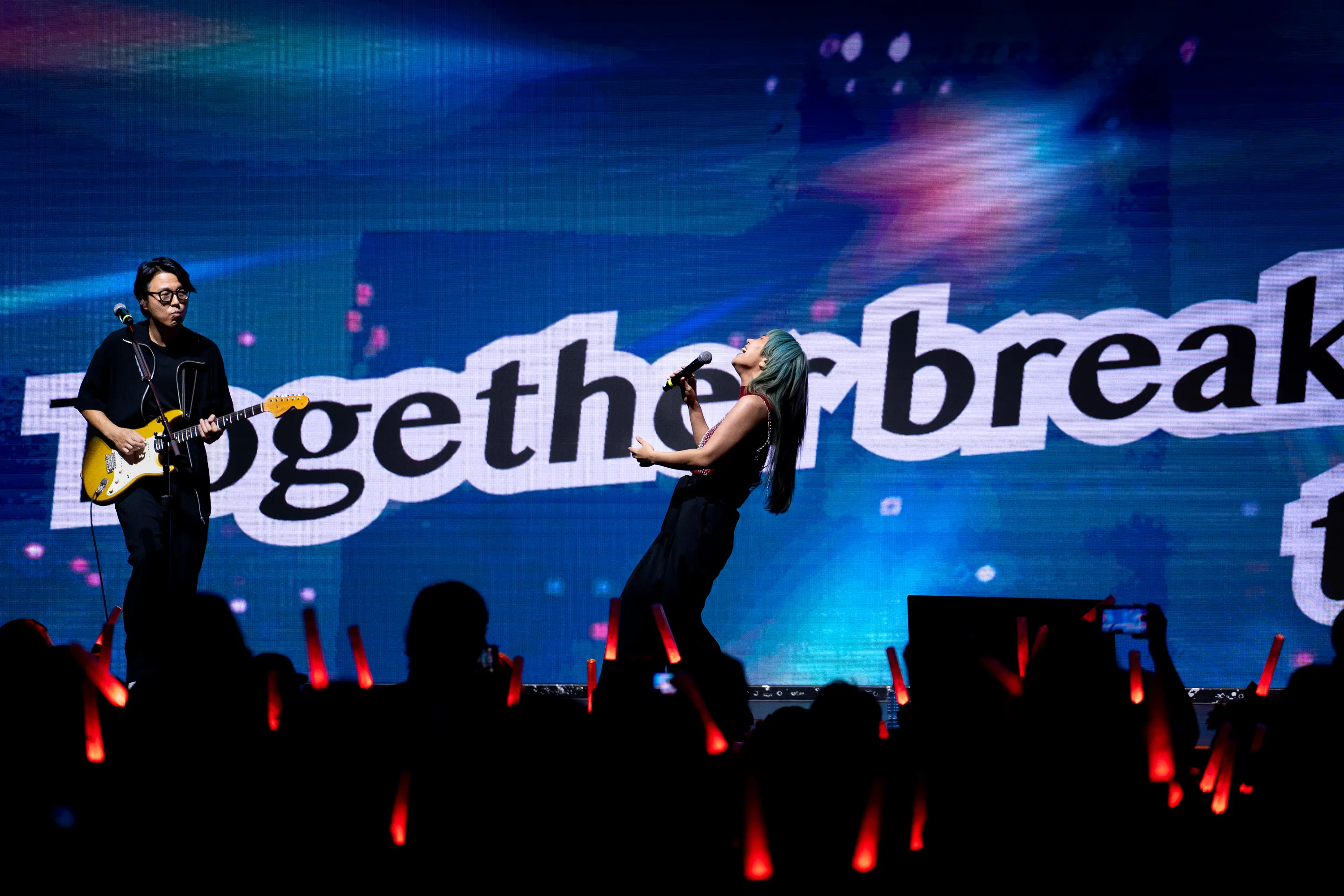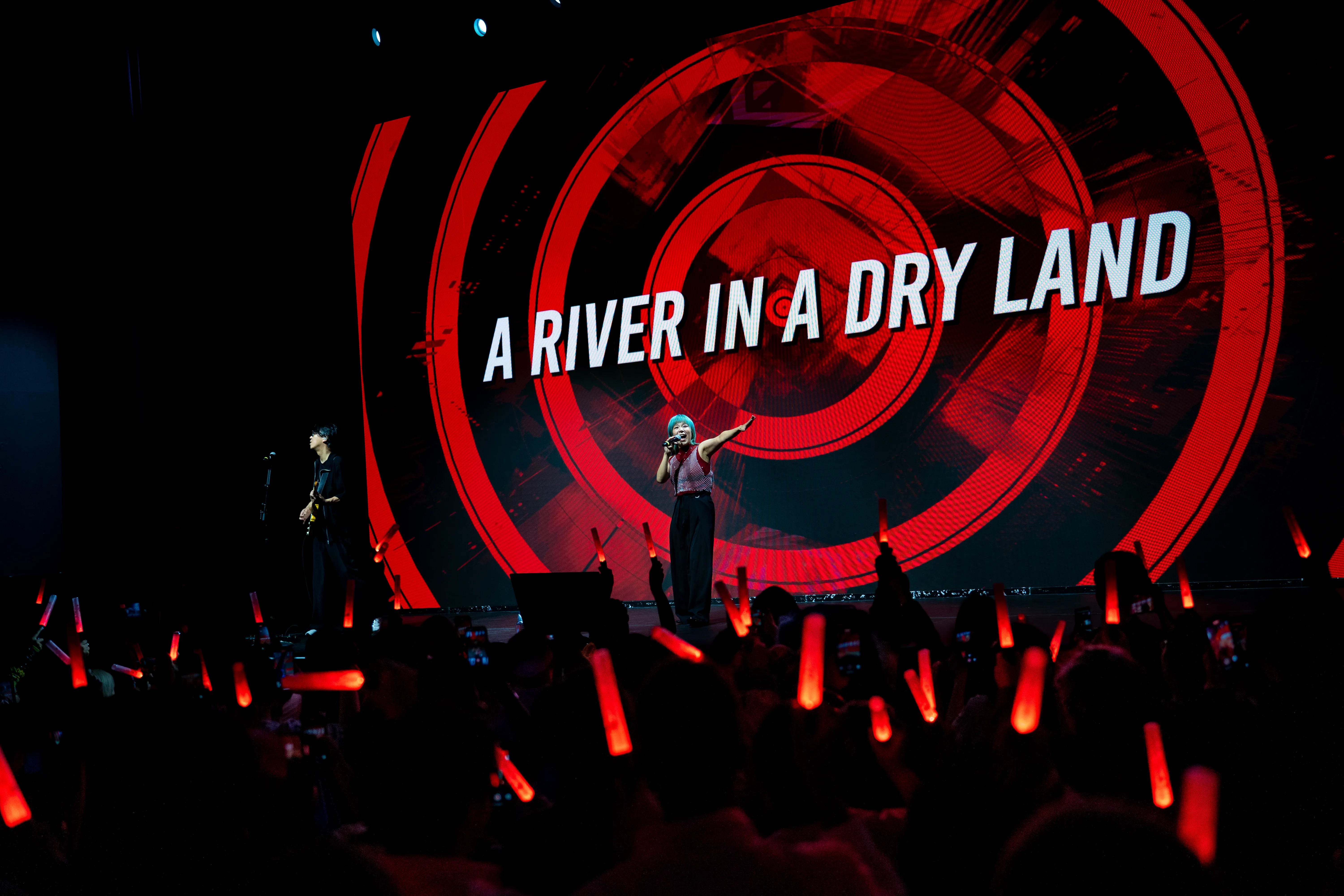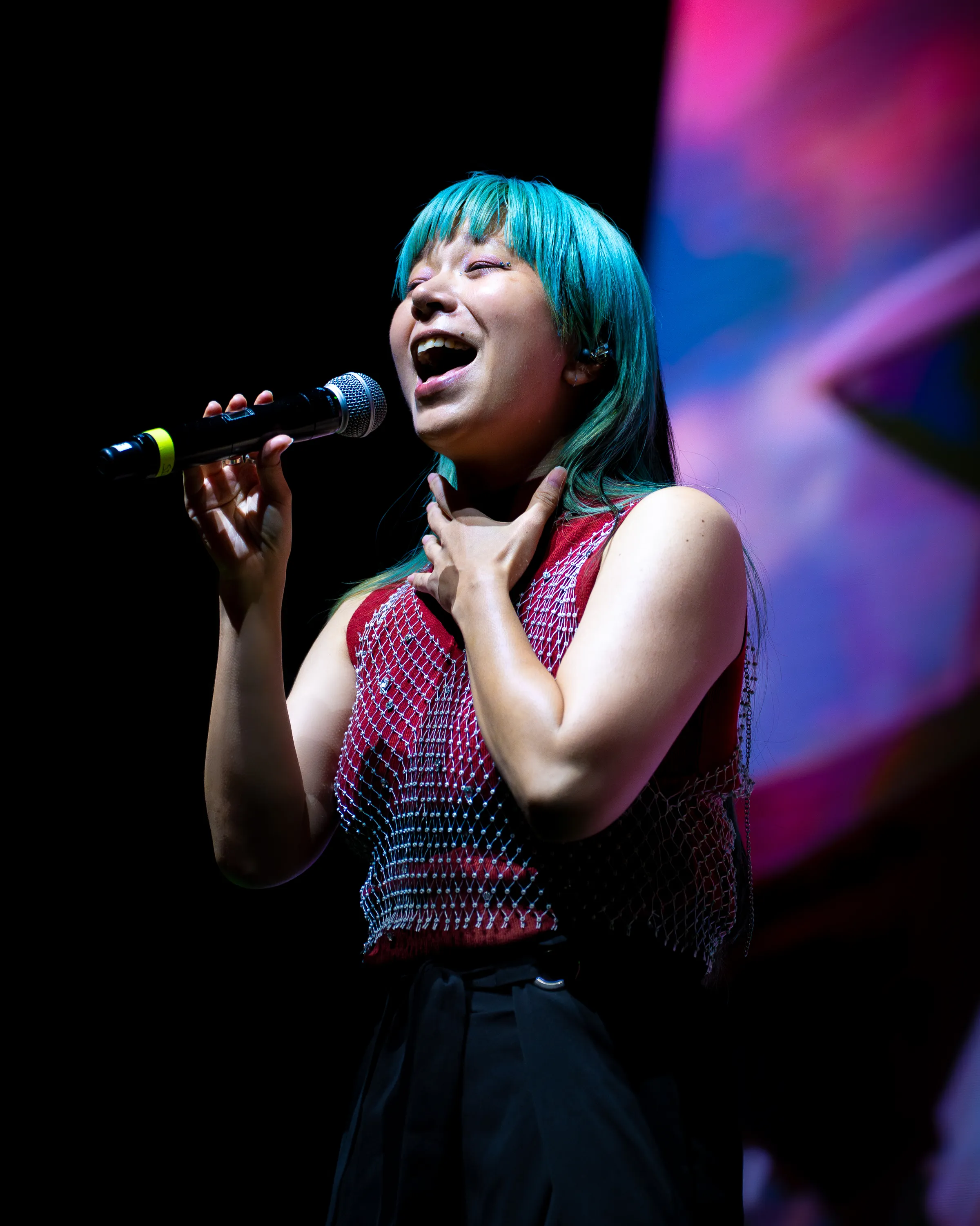 Lyn joins Konishi on stage and the concert proceeds with the two performing together, starting with the mellow “Beneath the Mask”.
