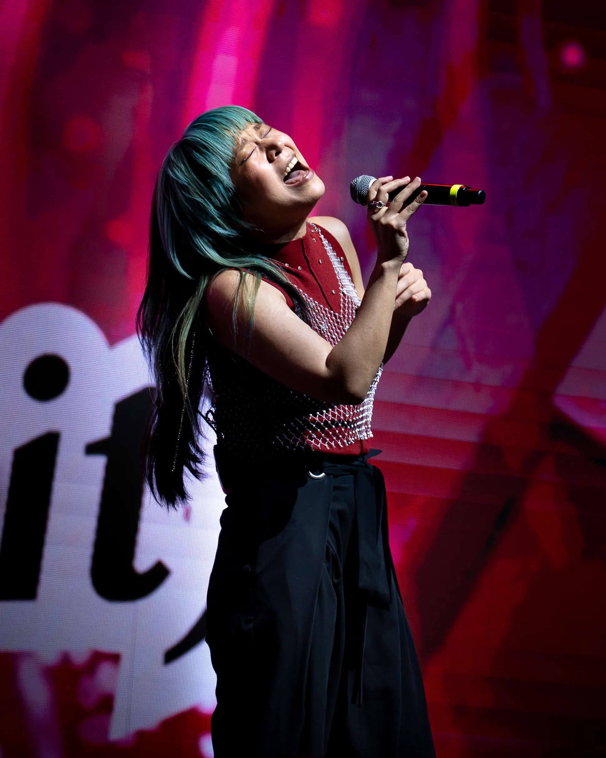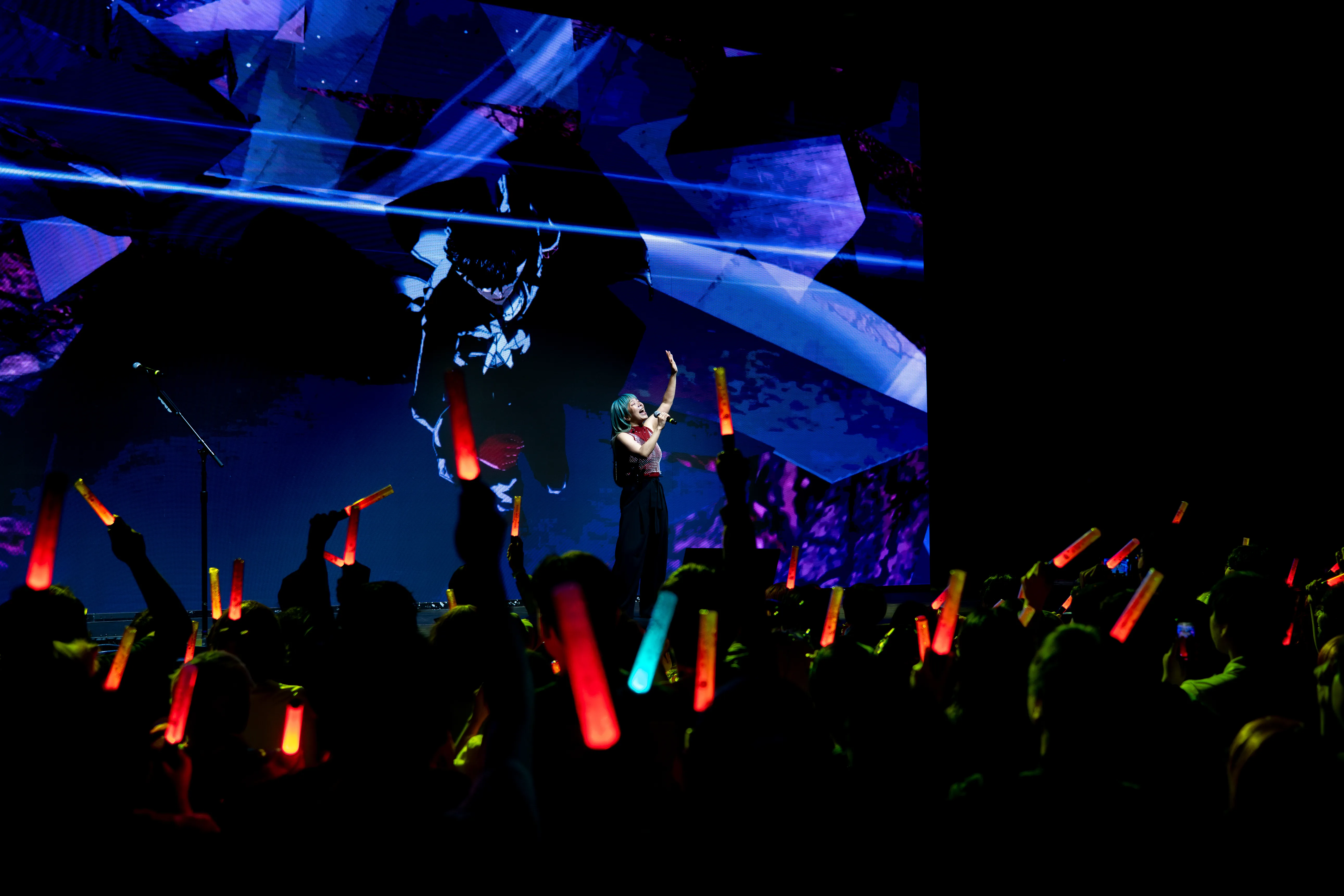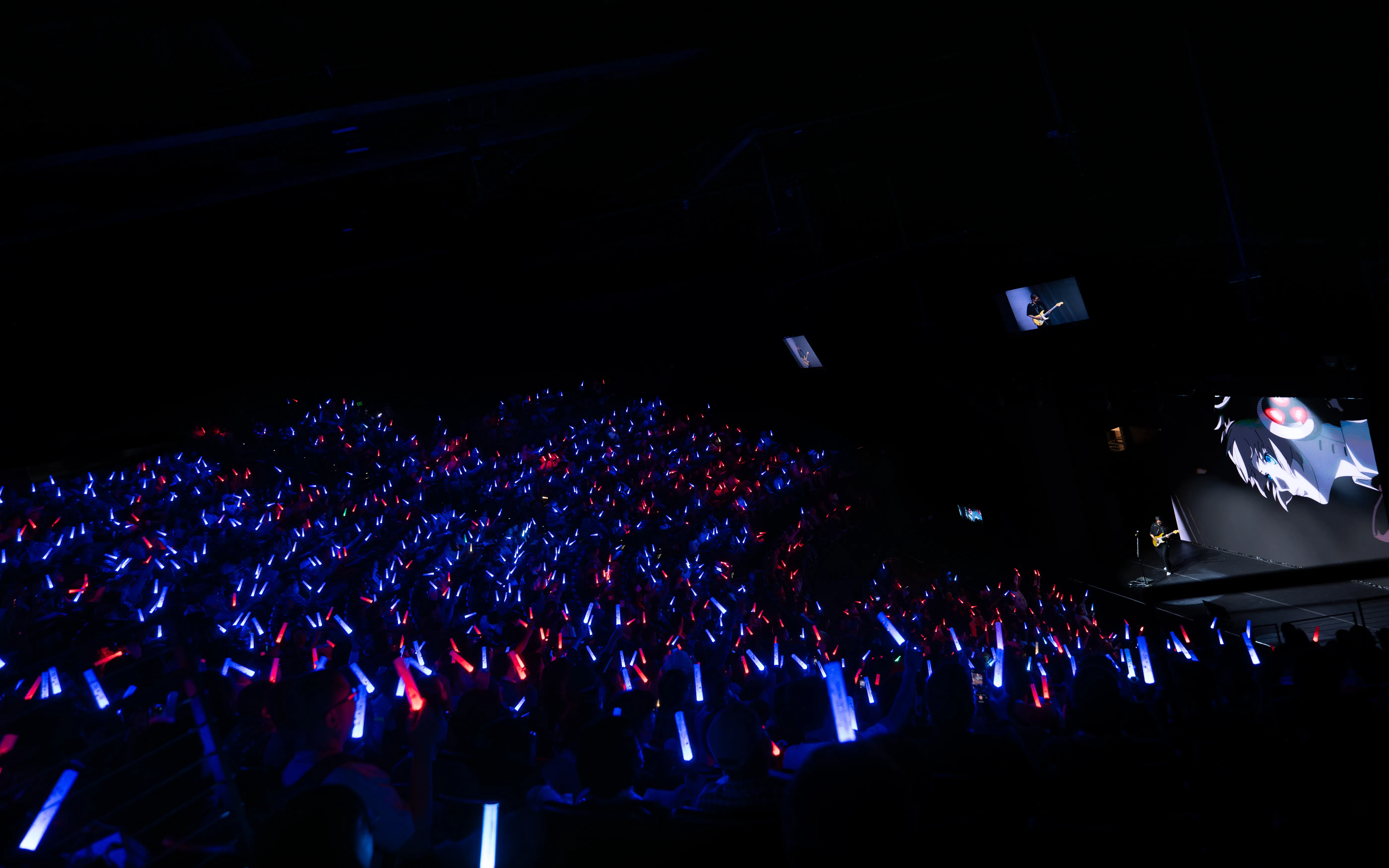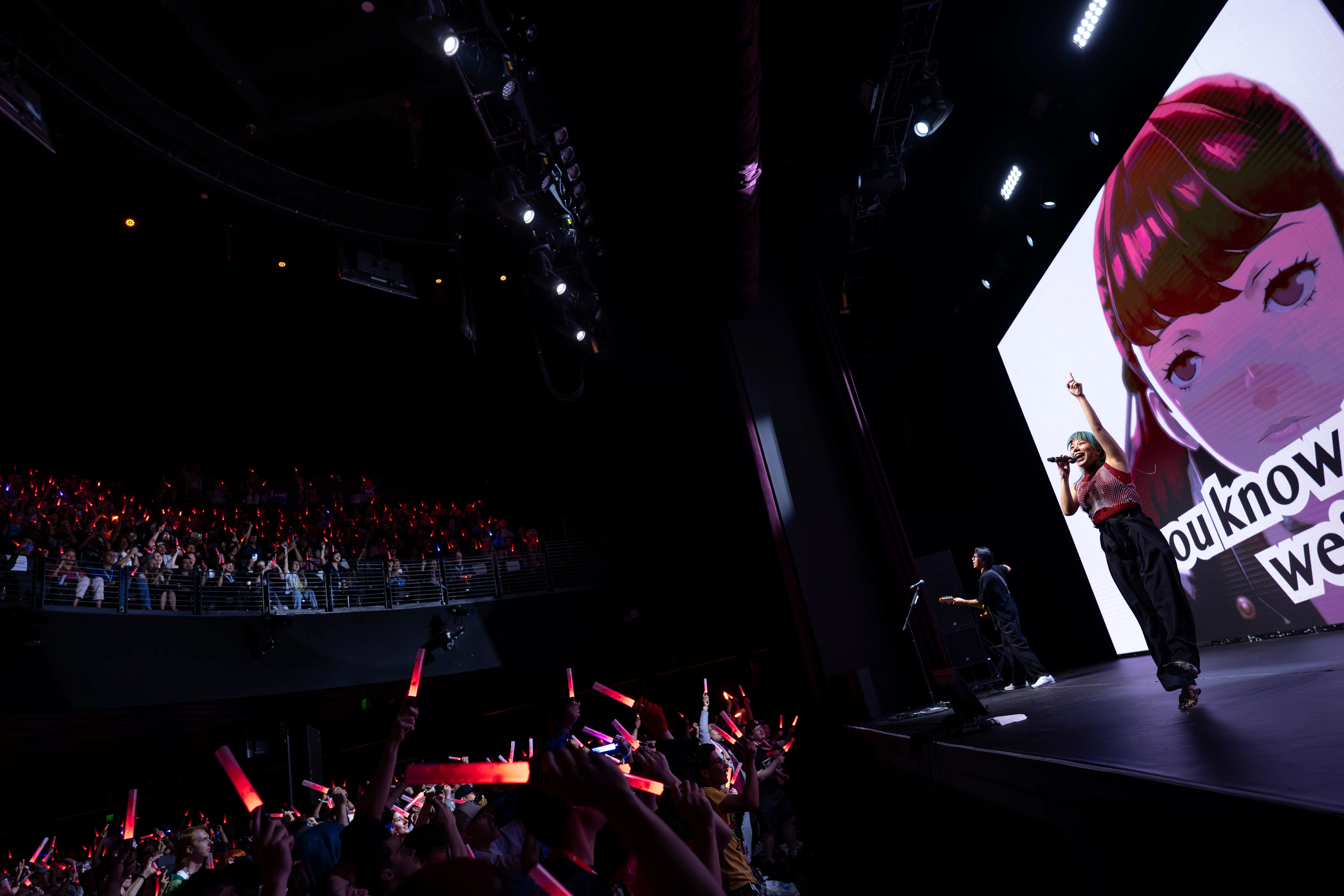 The afternoon’s Persona Music Experience concert event took place at The Novo, a live music venue a short walk from the convention center. As with the morning panel, The Novo was also now at capacity, filled with fans eager to see Lyn’s first full performance in the U.S.