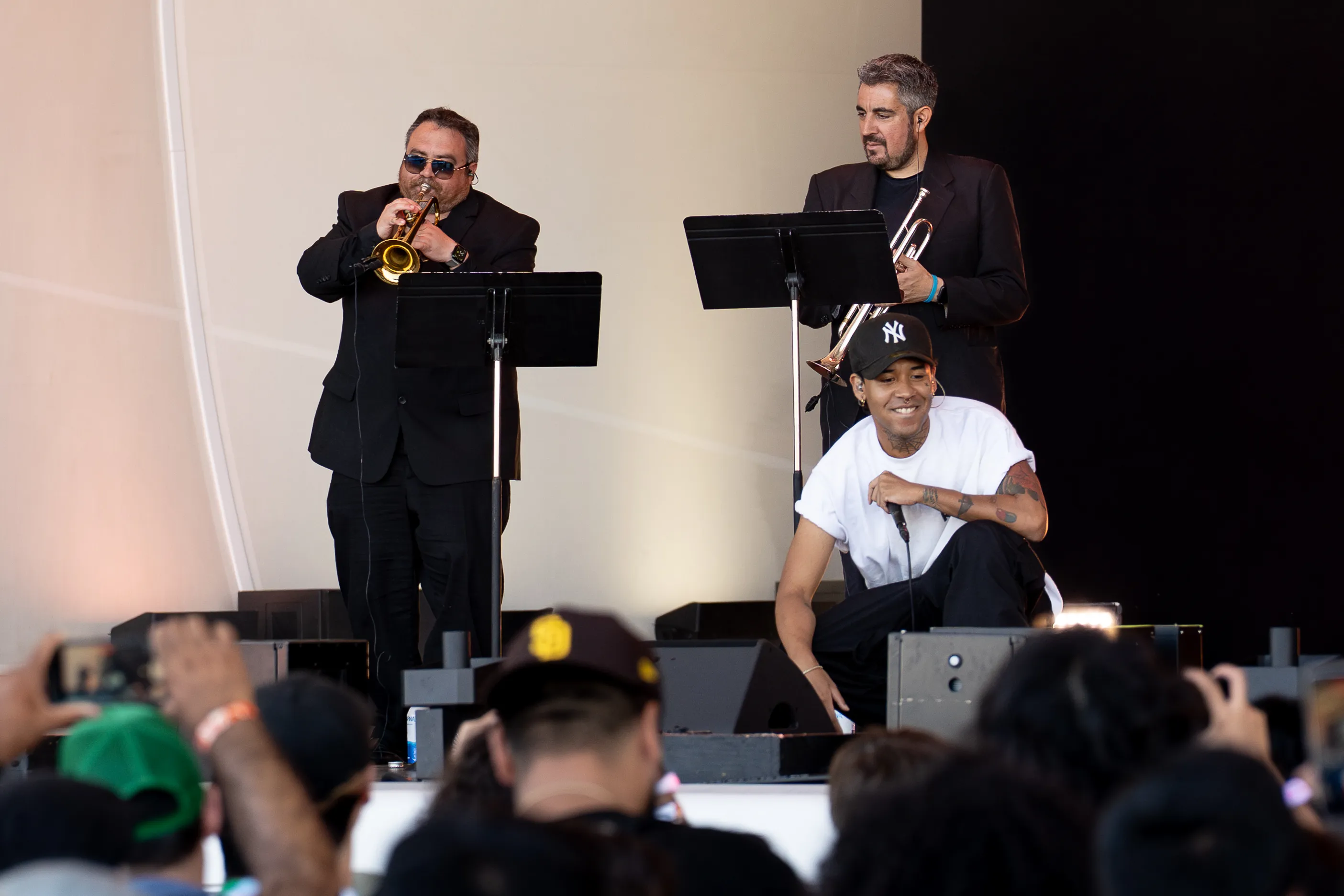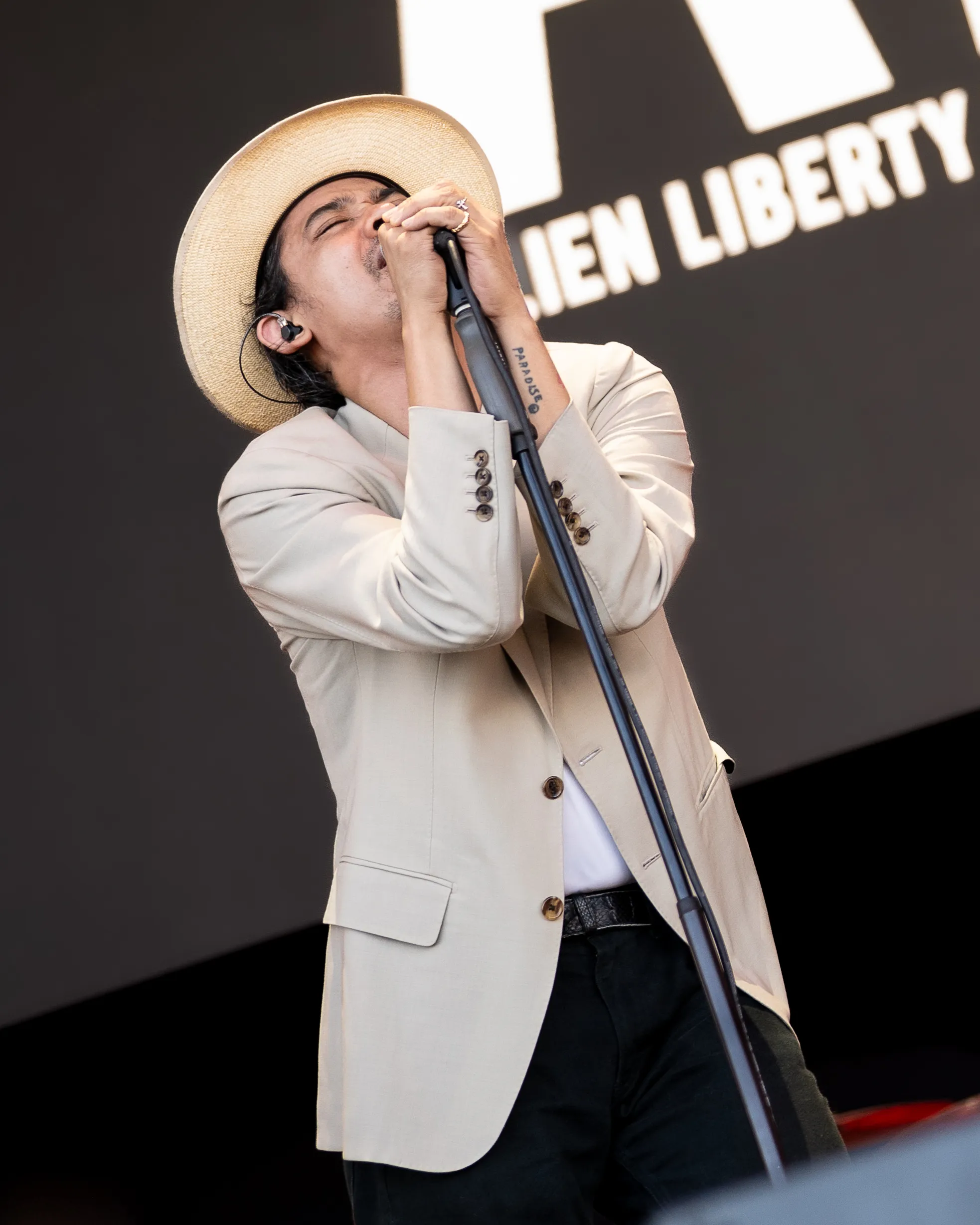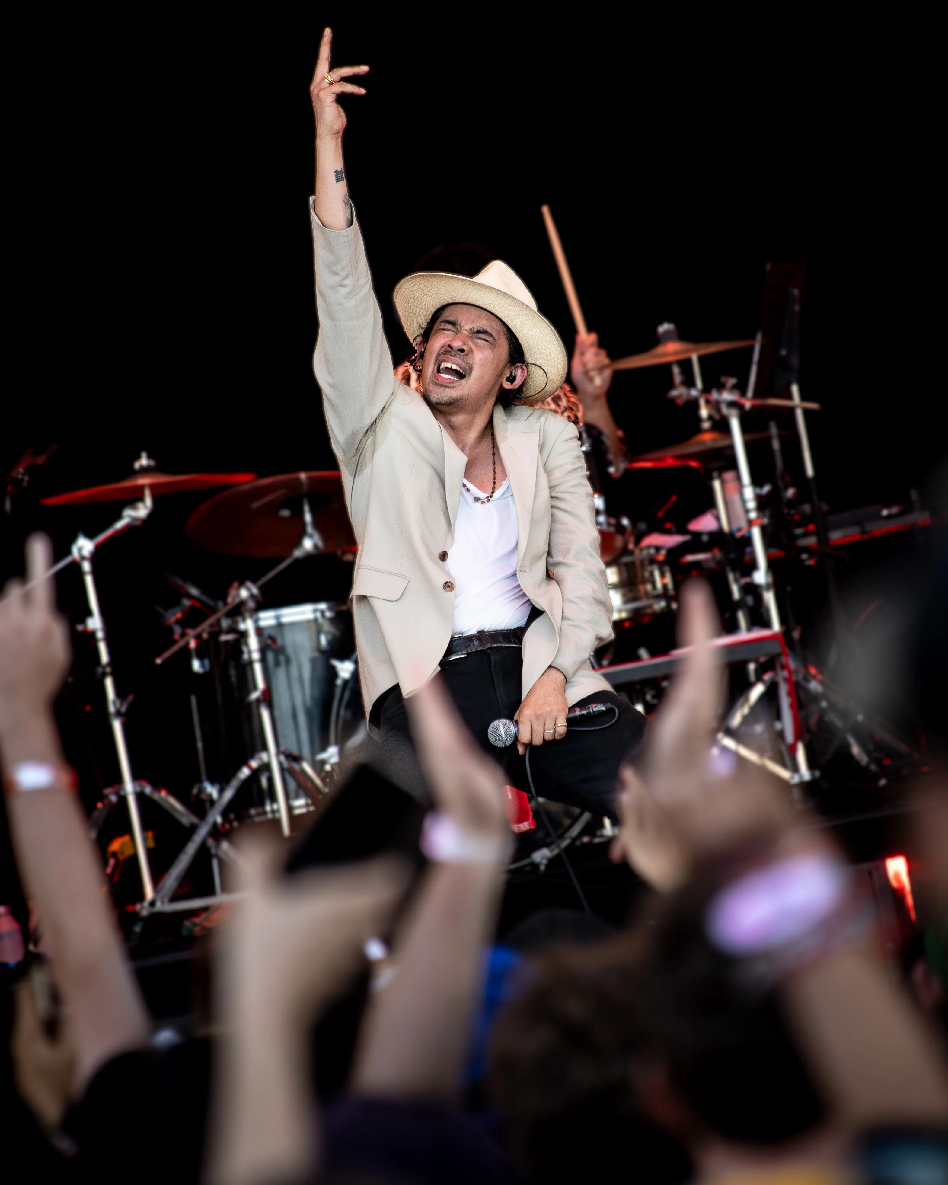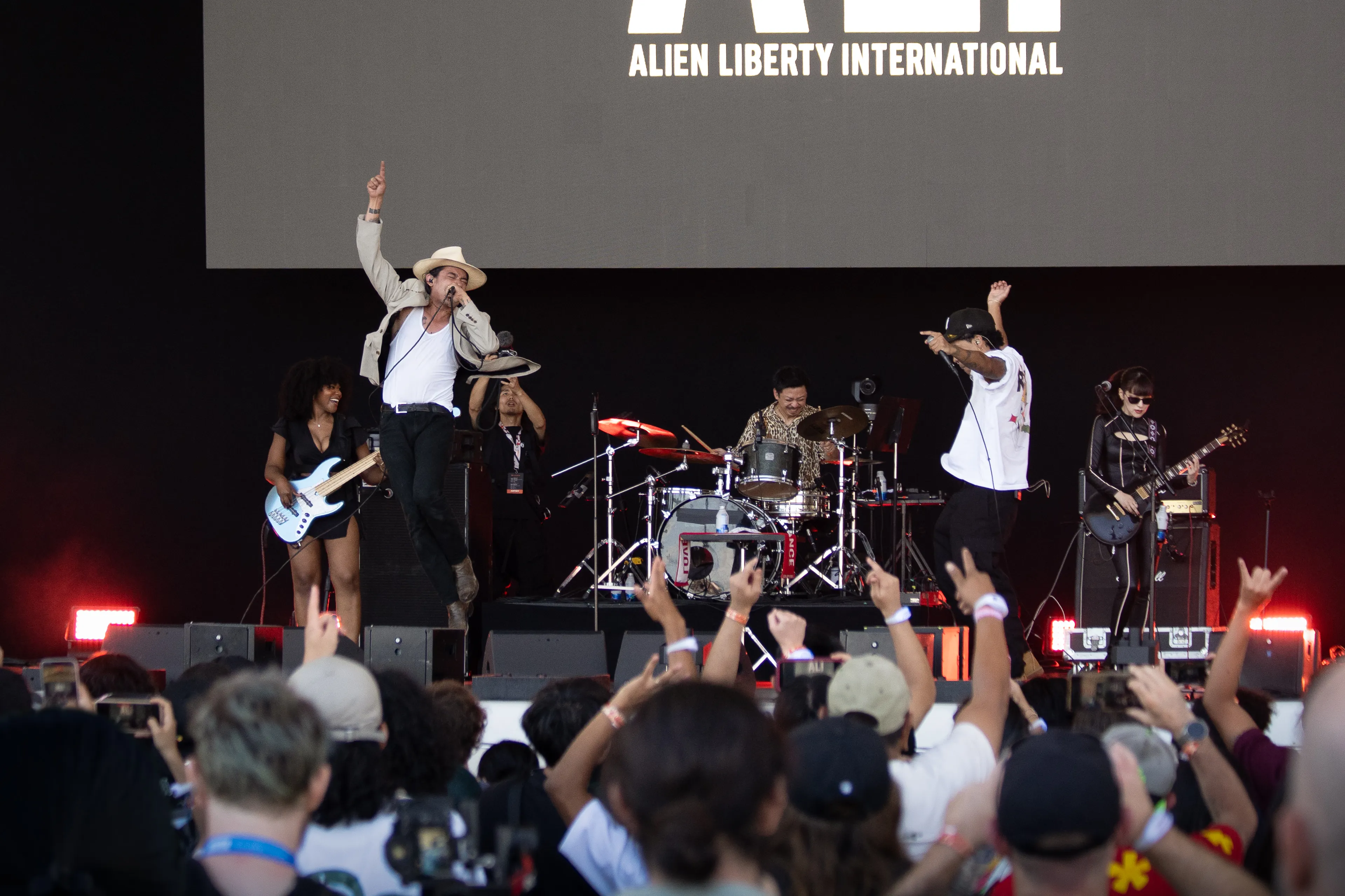 Between the brass-heavy anthems and the sweat-soaked grooves, a break in the set put the authenticity of Leo on full display. Leo takes a moment to slow down and speak directly from the soul, pulling out personal notes (on real paper!) to help ensure the message gets across. Leo is not confident in his English ability, but the crowd cheers him on in support.