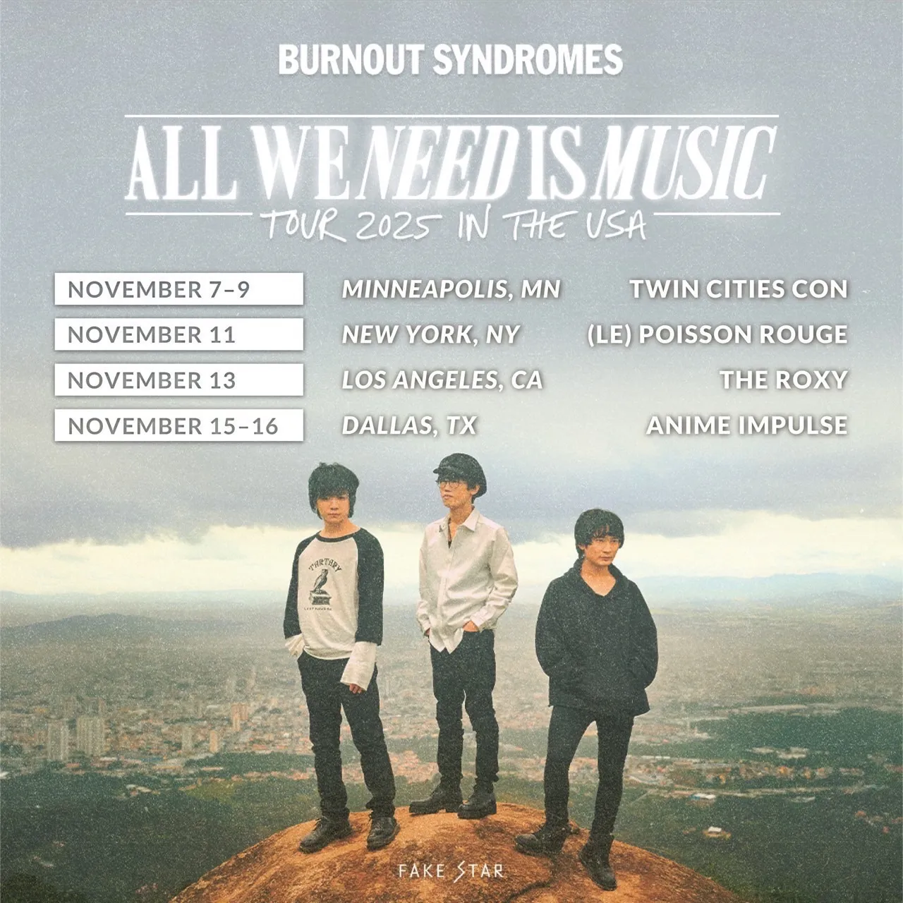 Following up on the success of their “Good Morning [New] World TOUR 2024 in the USA”, the rock trio based in Osaka, Japan will return to the U.S. in November with the “ALL WE NEED IS MUSIC TOUR 2025 IN THE USA” tour.