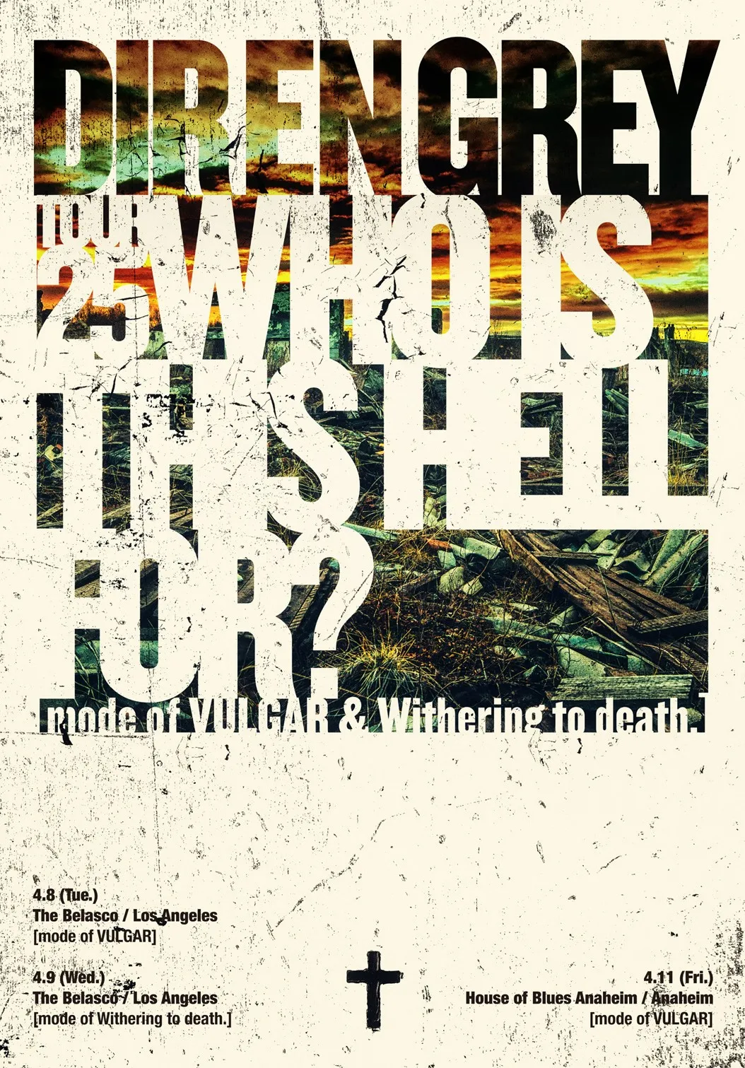 DIR EN GREY has announced an additional Los Angeles-area show for their “TOUR25 WHO IS THIS HELL FOR? [mode of VULGAR & Withering to death.]” tour, marking their first U.S. performances in approximately five and a half years. This additional date comes after their April 8th and 9th shows in Los Angeles sold out.